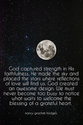 Dear God, Thank you for moments when the love of Your faithfulness is revealed. Teach us to find purpose in what YOU provide. Forgive us when we forget we were created by YOU. Show us how to peace in the presence of your love. And, help us welcome the blessing of a GRATEFUL heart. Amen